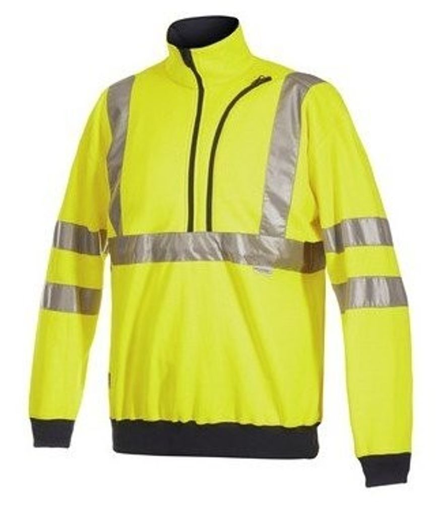 Halv dragkedja, mudd nertill och i ärmavslut. EN-471 klass 3.