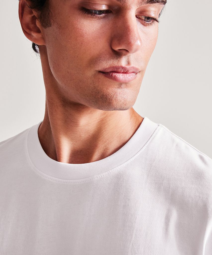 Vi har höjt vår nivå med denna ikoniska, kraftiga t-shirt. Tillverkad av ekologiskt ringspunnen garn, vår högkvalitativa ribbade rundhalsade t-shirt väger bara 220 g/m². Den finns i våra mest populära färgställningar med enfärgade färger i 100 % ekologisk bomull.