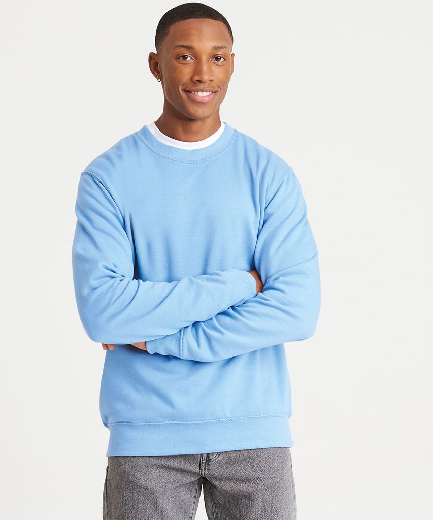 sweatshirt i klassisk stil med rund halsringning. Finns i en mängd fantastiska färger. Insatta ärmar. Tejpad hals. Snygg passform. Mjukt bomullstyg skapar en idealisk tryckyta.