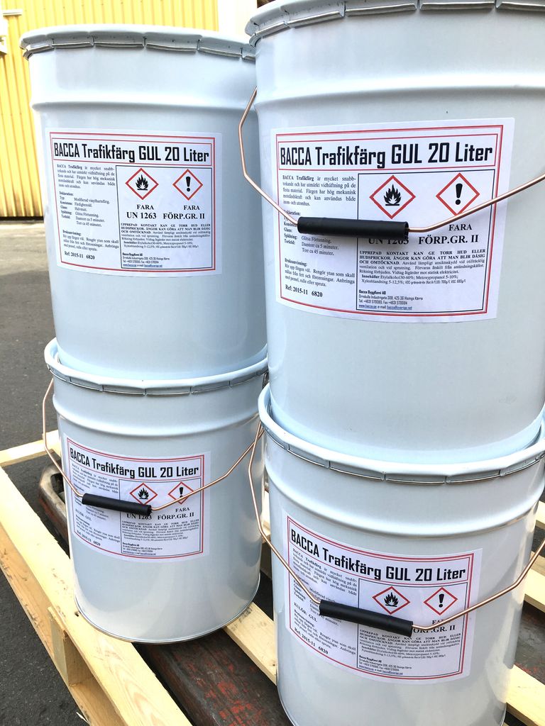 Bacca Trafiklinjefärg är en unik trafik- & markeringsfärg för industrin. Den är mycket slitstark, varför den används inom industrin som markering av truckgångar, parkeringsplatser etcetera.