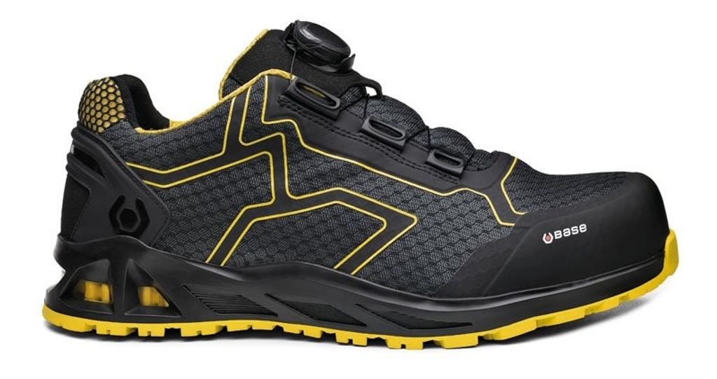 Dynamisk sportig skyddssko från BASE. Ovandel av luftig textil utan sömmar med förstärkt tåparti. Snörning med BOA system. Insida av hi-tech material för bästa