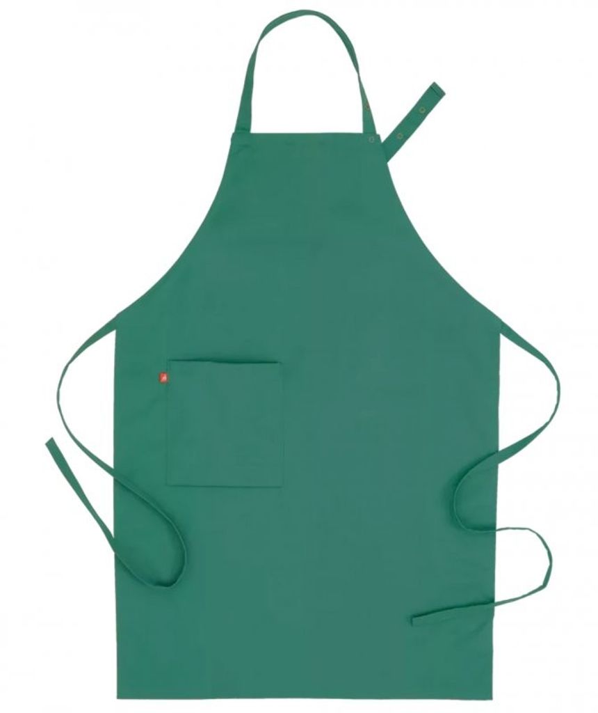 Bröstlappsförkläde i klassisk modell med nackband och rymlig ficka på höger sida