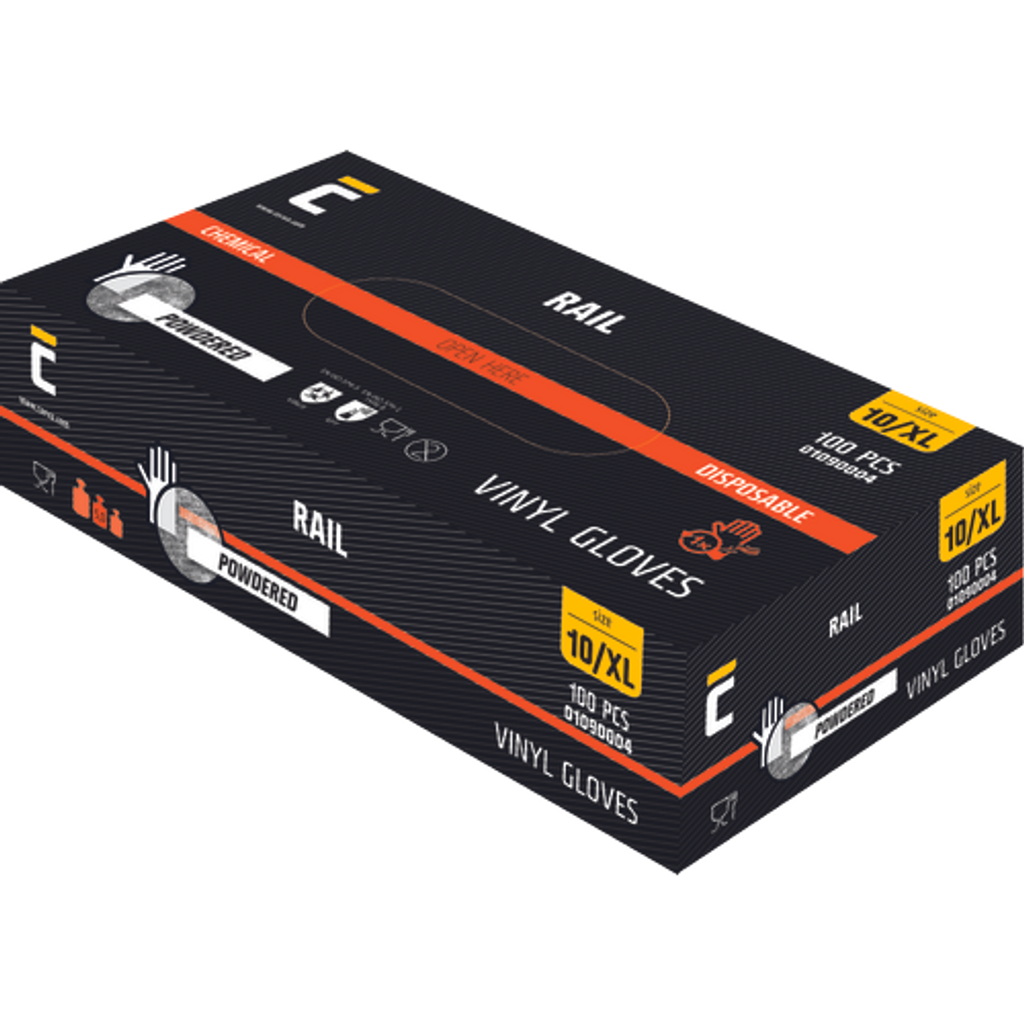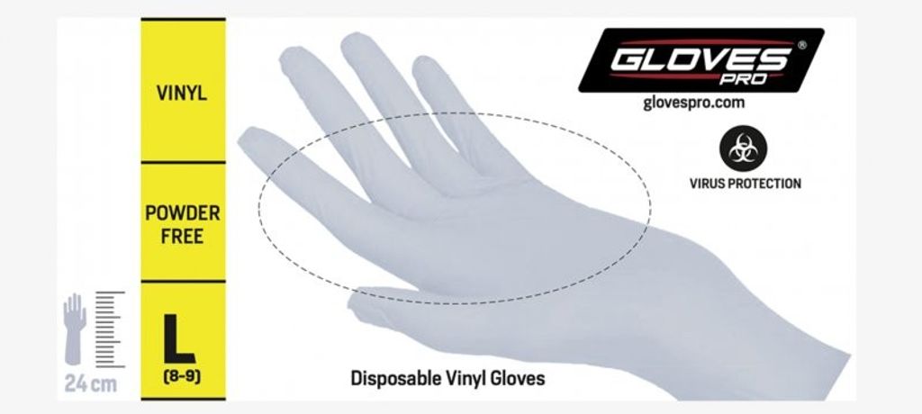 Puderfria engångshandskar tillverkade av vinyl. Innehåller inga spår av latex. Handskarna är utformade för att skydda mot föroreningar, smuts och potentiella irritationer vid arbeten med låg risk. Den rullade kanten på kragen hindrar att handsken glider ned och ger ökat skydd.