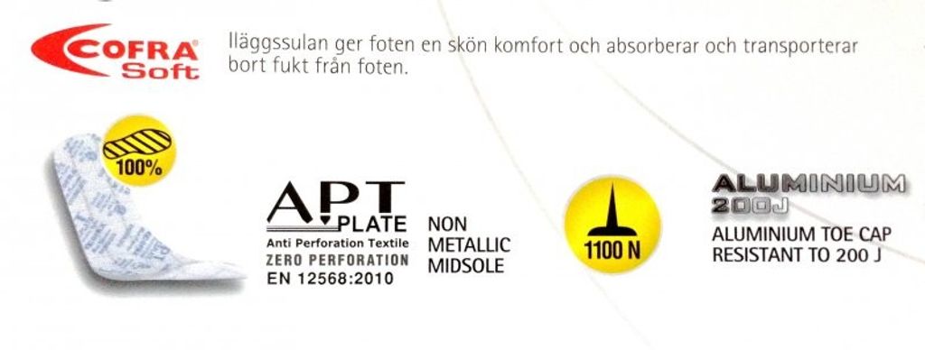 Suverän sportsko med perfekt passform och unika tekniska lösningar för optimal komfort. Ovandel av Nubuck med förstärkt tåparti. Insida beklädd med andastextil som transporterar bort fukt. Utrustad med aluminiumhätta och med superlätt flexibelt textilspiktrampskydd API. Anatomisk iläggssula garanterar en stötdämpning utan jämförelse? Greppsäker avancerad slitsula av TPU för komfortens skull stabiliserar foten för att förhindra vridning. Mycket halksäker skyddssko