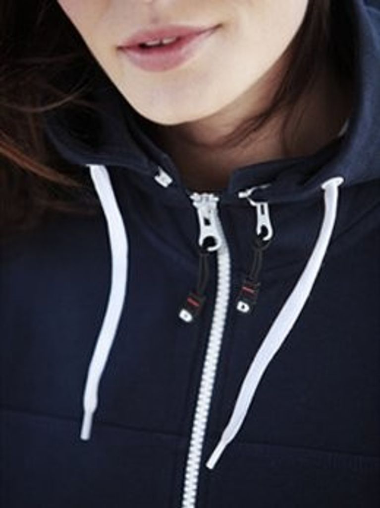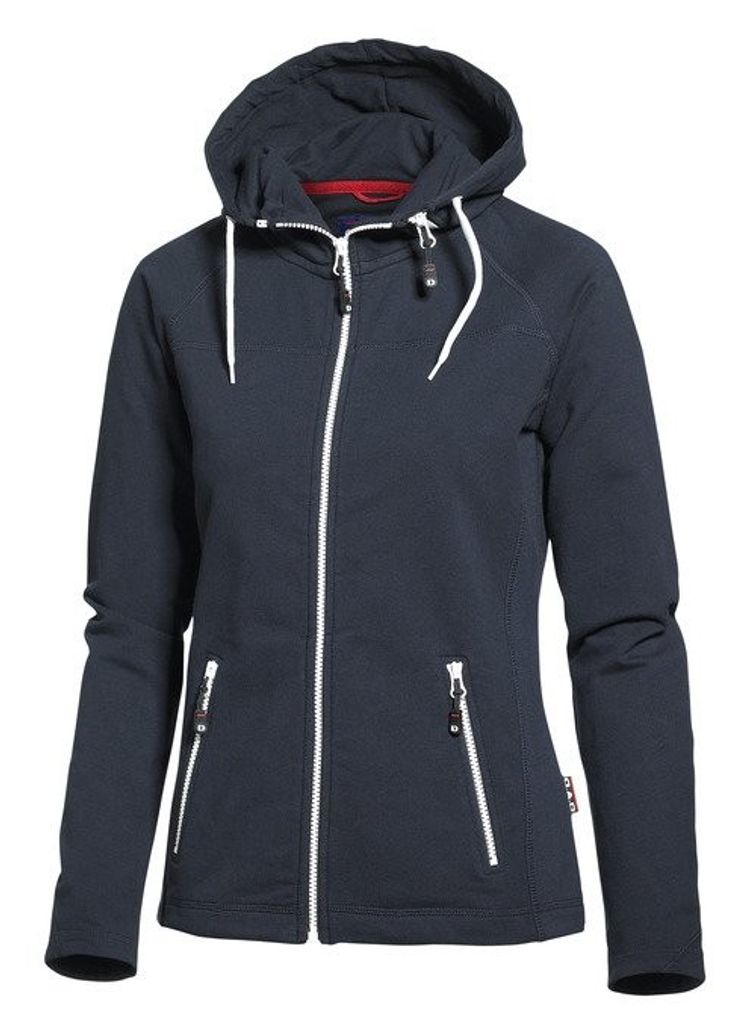och smidig tröja i maritim stil, gjord i blandmaterial för skön komfort. Unik lösningmed avtagbar huva där dragkedjan både fyller en praktisk och dekorativ funktion.Kraftiga dragkedjor i avvikande färg. Två sidofickor samt dekorationssömmar ton-i-tonFormsydda ärmslut. Finns i dam- och herrmodell.