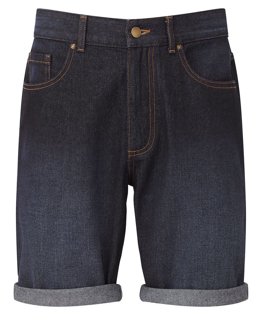 Passformen på dessa jeansshorts för män är lättare på låret, så du kan enkelt styla dem upprullade vid fållen. De är tvättade för en autentisk finish och har mässingsdetaljer med kontrastsömmar.