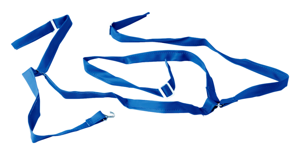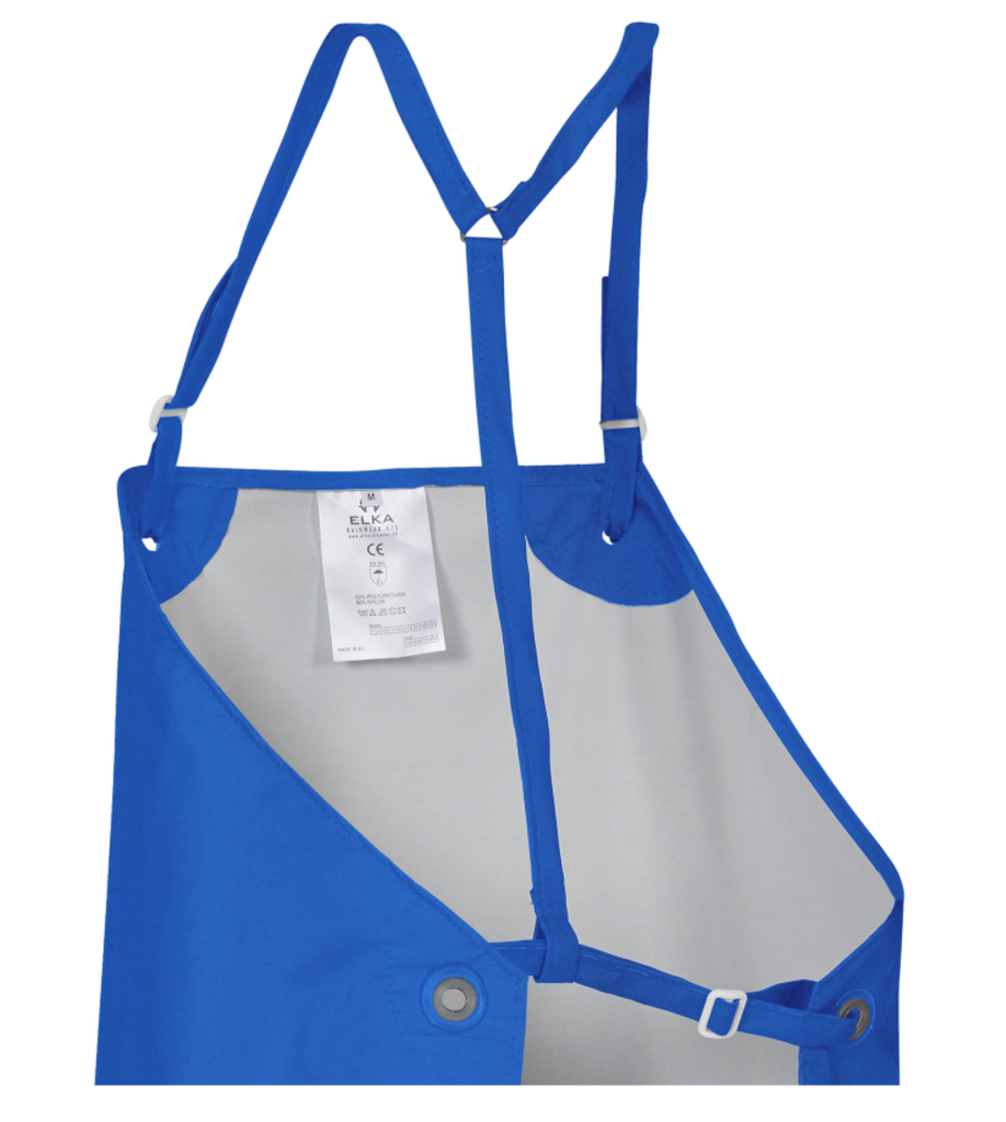 Till ELKA förkläde blå 320 gram. PVC/Polyester. Bandet/selen fästes i öljetter och särskild metallkrok för enkel låsning i öljett i midja. Förkläde 035800 passar detta sele/hängsleband passar till.