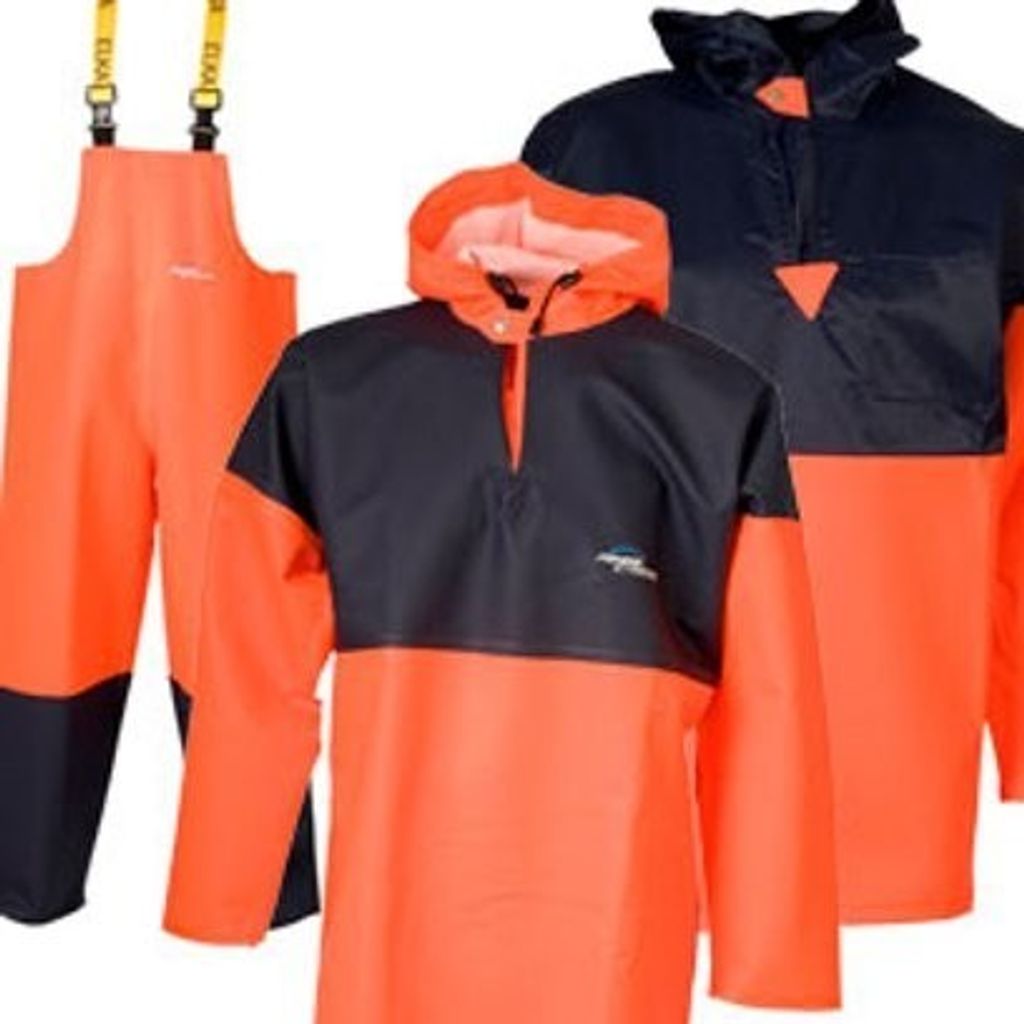 PVC / Polyester 600 g / m². Vattenpelare > 13000 mm. Svetsade sömmar. Bävernylon. Huva. Storlek: XS-3XL.