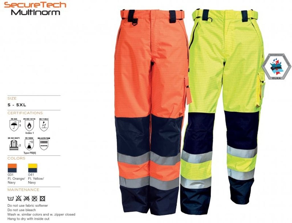 I linje med ökande krav från industrimarknaderna har ELKA utvecklat en serie högkvalitativa och certifierade arbetskläder för optimal säkerhet i de mest utsatta arbetsområdena. Produkterna finns i det flexibla och slitstarka PU / polyestermaterialet som kombinerar en hög rivhållfasthet med en naturlig elasticitet och komfort. SecureTech Multinorm-kollektionen innehåller också produkter av Oxford polyester, som är 100% vindtät, vattentät och andas. Produkterna lever upp till ett antal EN-standarder, som alla ställer höga krav på design och prestanda för säkerhetskläder. Alla ELKA-produkter är certifierade vid EU-godkända testinstitut