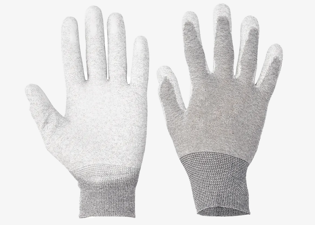 Smidig monteringshandske med PU-beläggning i greppzon. Sömlös polyester med kolfiber – Antistatisk och bekväm.