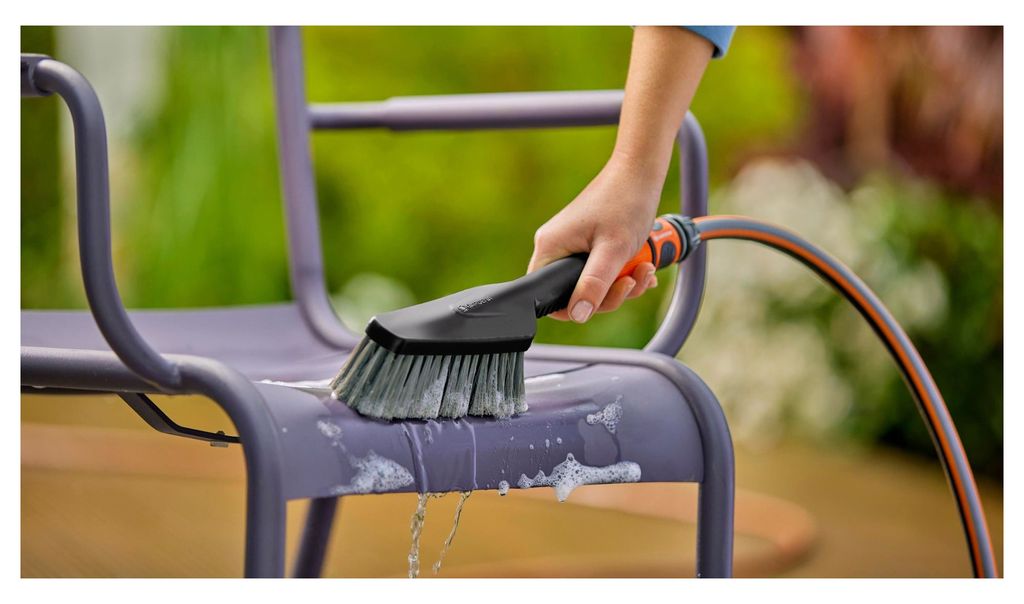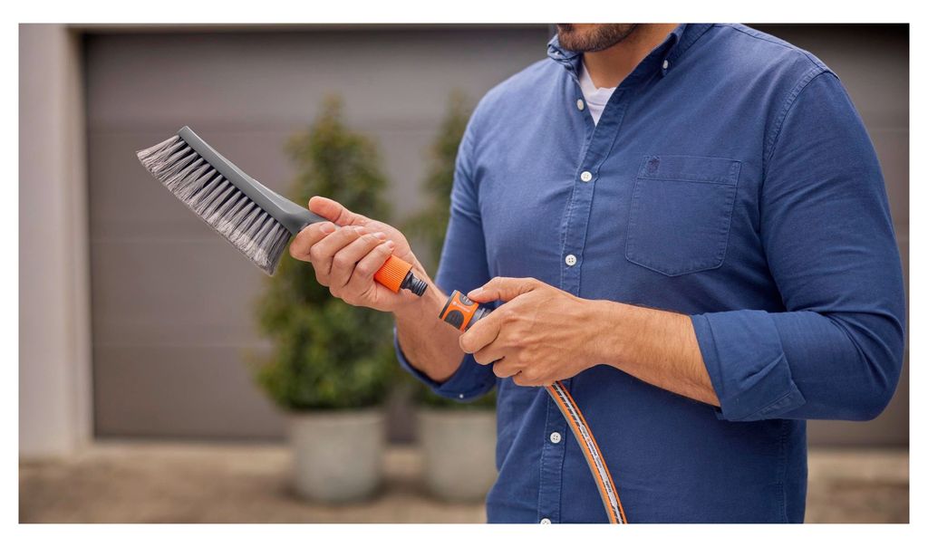 Gardena handborste S är en kompakt och smidig borste för manuell rengöring av mindre ytor. Den kopplas direkt till trädgårdsslangen via Cleansystem och låter dig skrubba medan vattnet sköljer bort smutsen. Passar perfekt för detaljer där högtryckstvätt är för kraftig - men du ändå vill ha ett effektivt resultat.