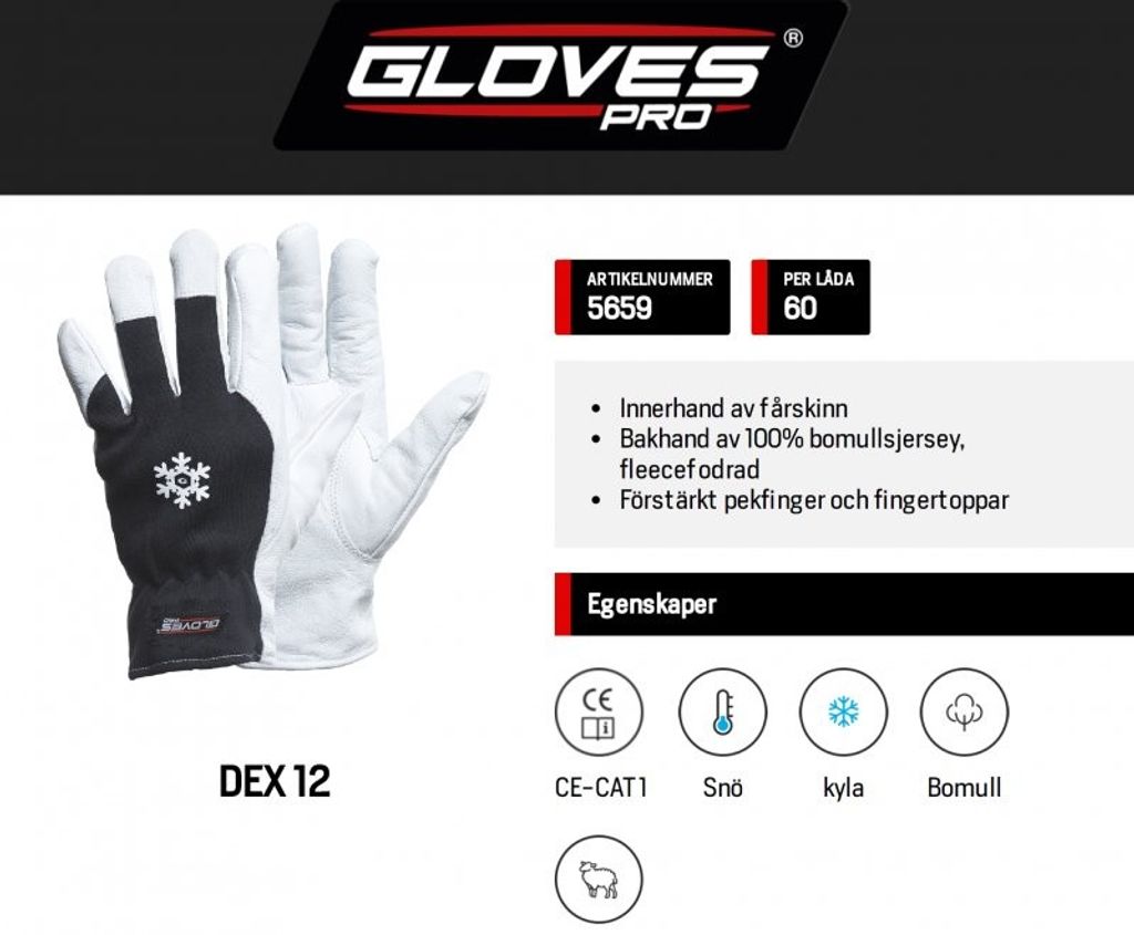 Gloves Pro Getskinnhandske DEX 12 vinter