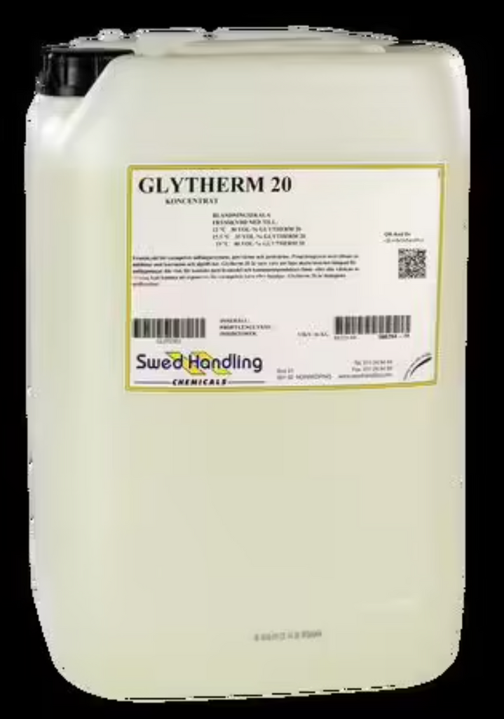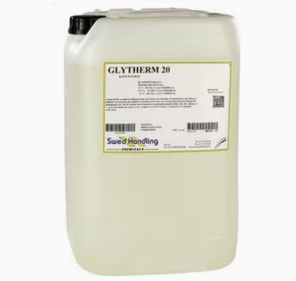 Glytherm 20 är en nitrit-, amin- och fosfatfri monopropylenglykol, avsedd för i första hand värmeöverföring samt som köldbärare inom VVS-applikationer värmepumpsanläggningar, solvärmeanläggningar och som frysskydd i alla typer av värme-/ kylsystem.