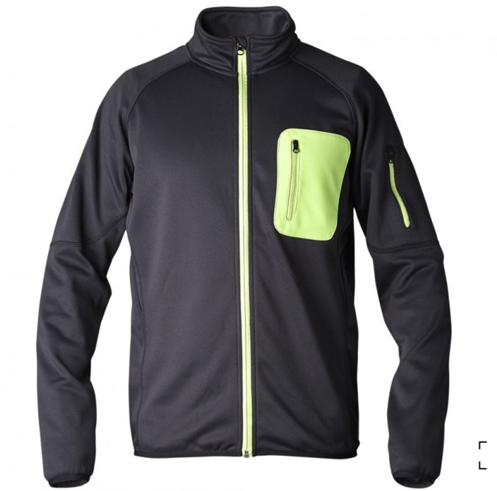 Stretchmaterial. Utmärkt andningsförmåga. Hel dragkedja. Dragsko i nederkant. Elastisk mudd i ärmslut. Två framfickor med dragkedja. Dragkedjor i elegant gul kontrastfärg.