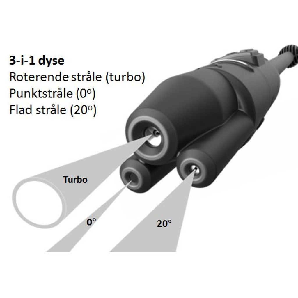 Högtryckstvätten HTR1600 levereras med ett unikt 3-i-1-munstycke, där du kan