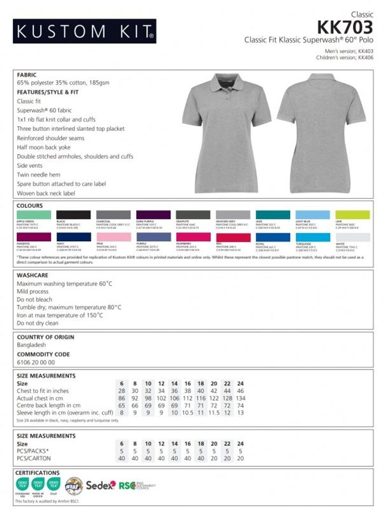 Klassisk Piké dam KK703 med Superwash® 60°C