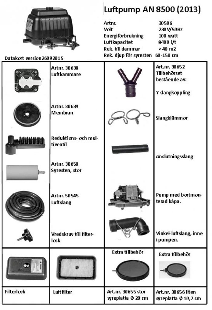 En kraftig luftpump för syresättning. Denna luftpump lämpar sig för bassänger, pumpgropar eller dammar med en vattenyta på mellan 40 och 100 m2.