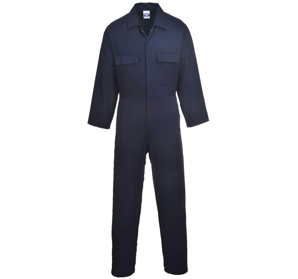Bomullsoverall erbjuder olika fickor för praktisk förvaring, inklusive en tumstocksficka. Sido elasticering ger extra komfort och rörelsefrihet.