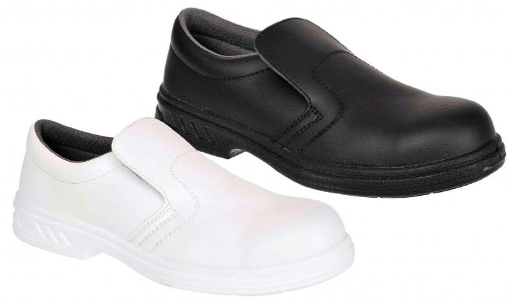 En omtyckt lågprisskyddssko i snörlöst slipin modell. Idealisk för kök, chark, livsmedelsindustri eller medicin/vård.