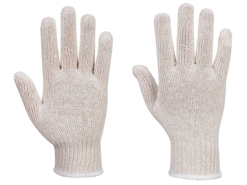 Frackhandske vit. Material: 100% bomull, PVC prickar för bättre grepp. Förpackning: 12 par eller helkartong om 600 par . Storlek: Medium 8 - XL 10.