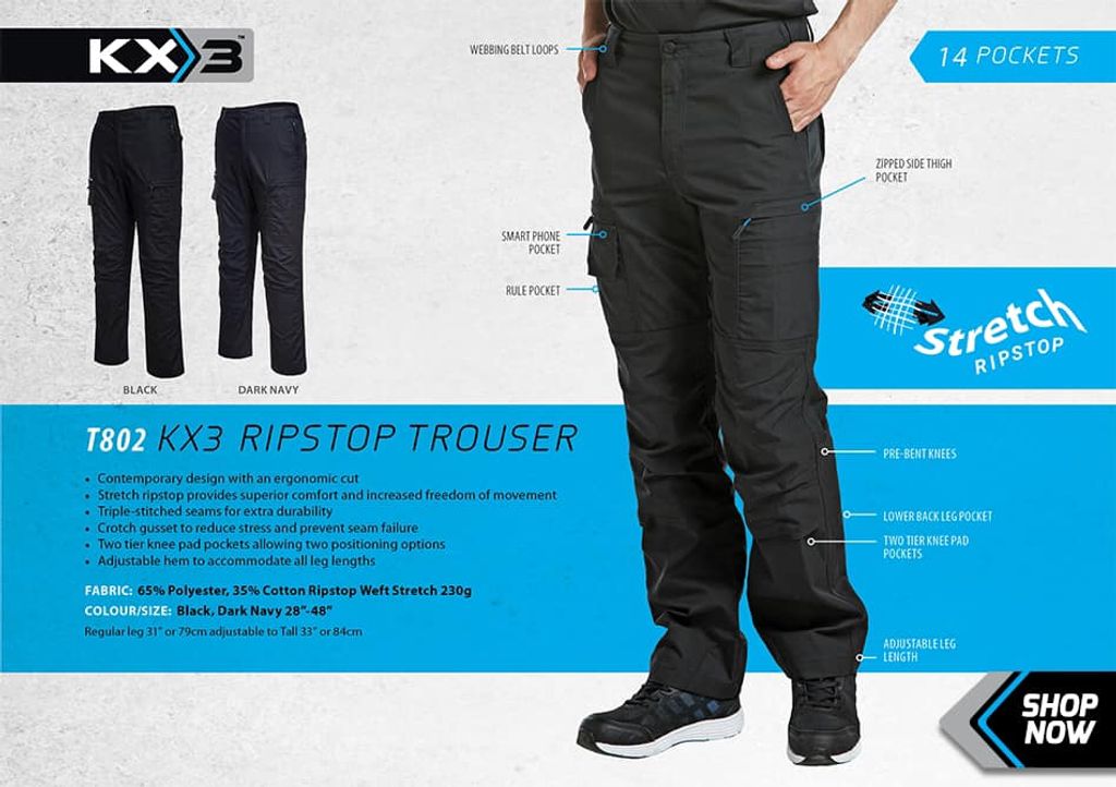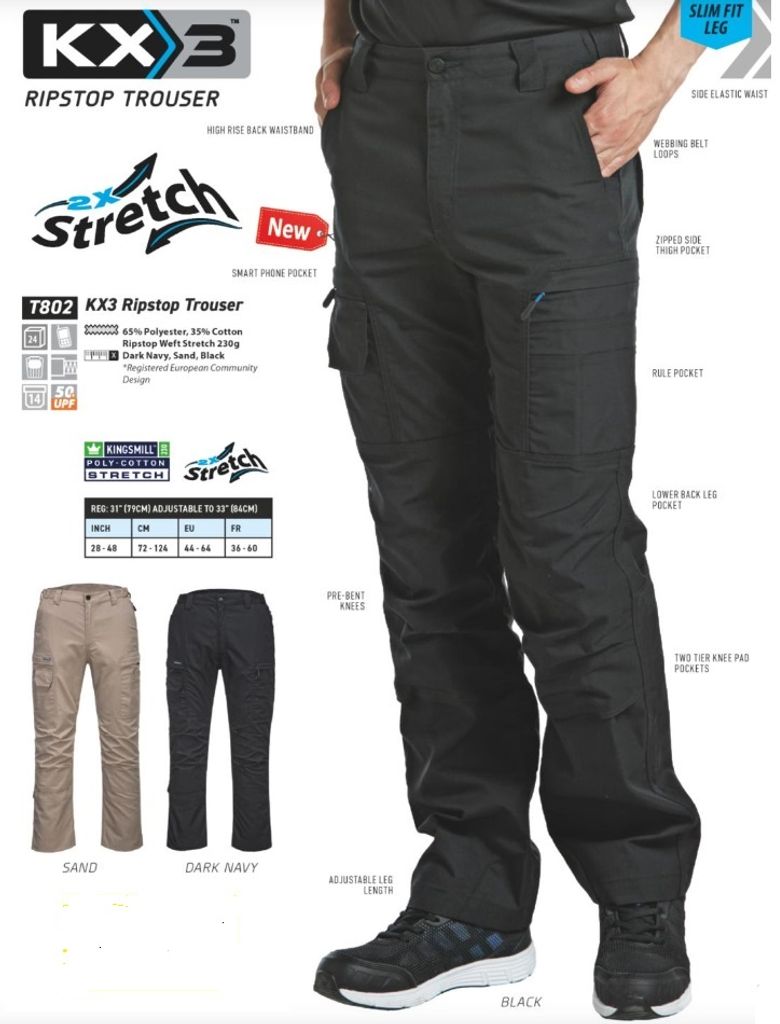 Stretch ripstop ger överlägsen komfort och ökad rörelsefrihet. Trippelsydda sömmar för extra hållbarhet. Grenkil för att förhindra sömbrott.