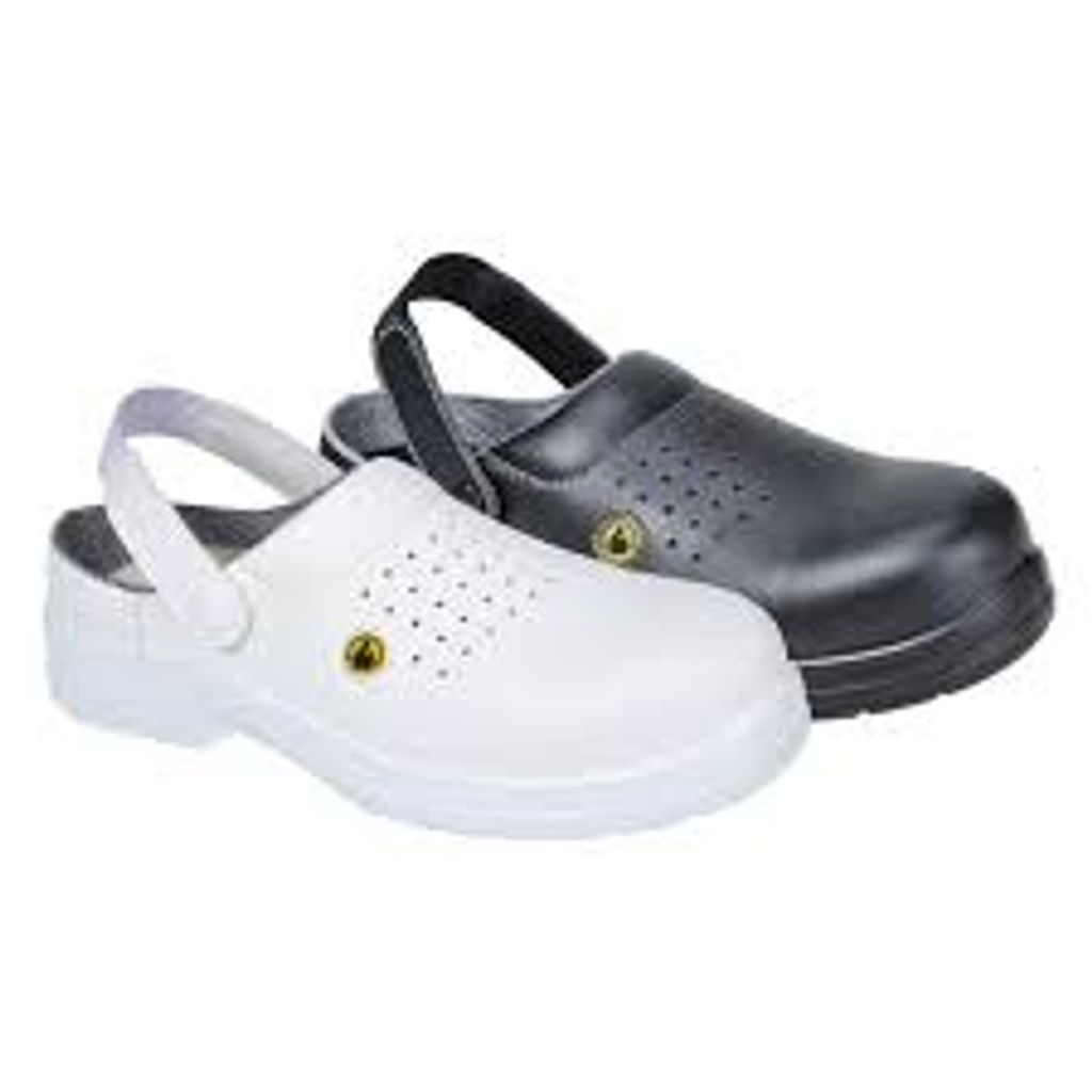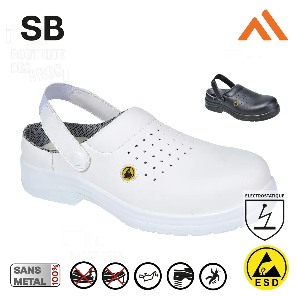 Metallfri lätt skyddstoffel med en perforerad ovandel för ökad andningsförmåga. 100% icke-metallisk med plastknapp. Lämplig för användning i ESD miljöer. Uppfyller EN 61340-5-1.