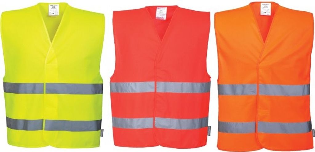 Gul eller orange. Klass 2. 100% polyester. Kardborreknäppning. One size.