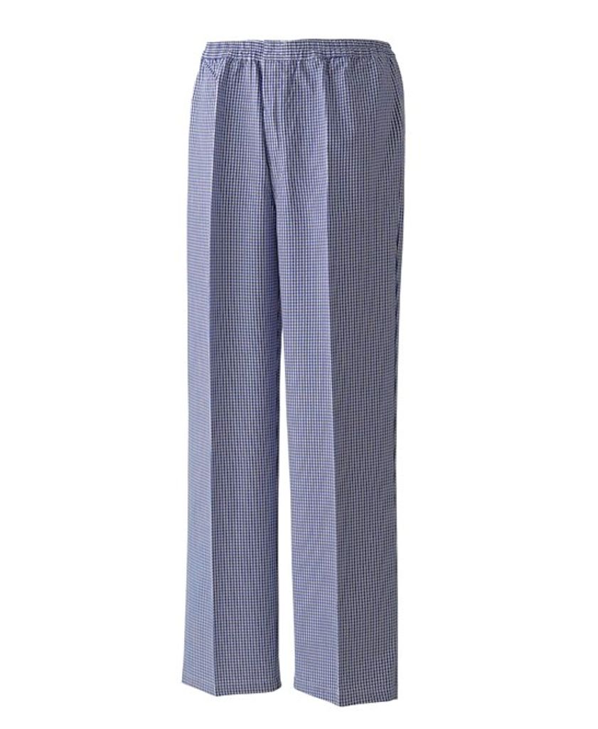 Traditionell kockbyxa som finns i två populära minirutiga pepita. En lätt att bära bekväm pull-on stil för maximal komfort under långa arbetspass i köket. Med resår i midjan och gylf med dragkedja och en användbar bakficka.