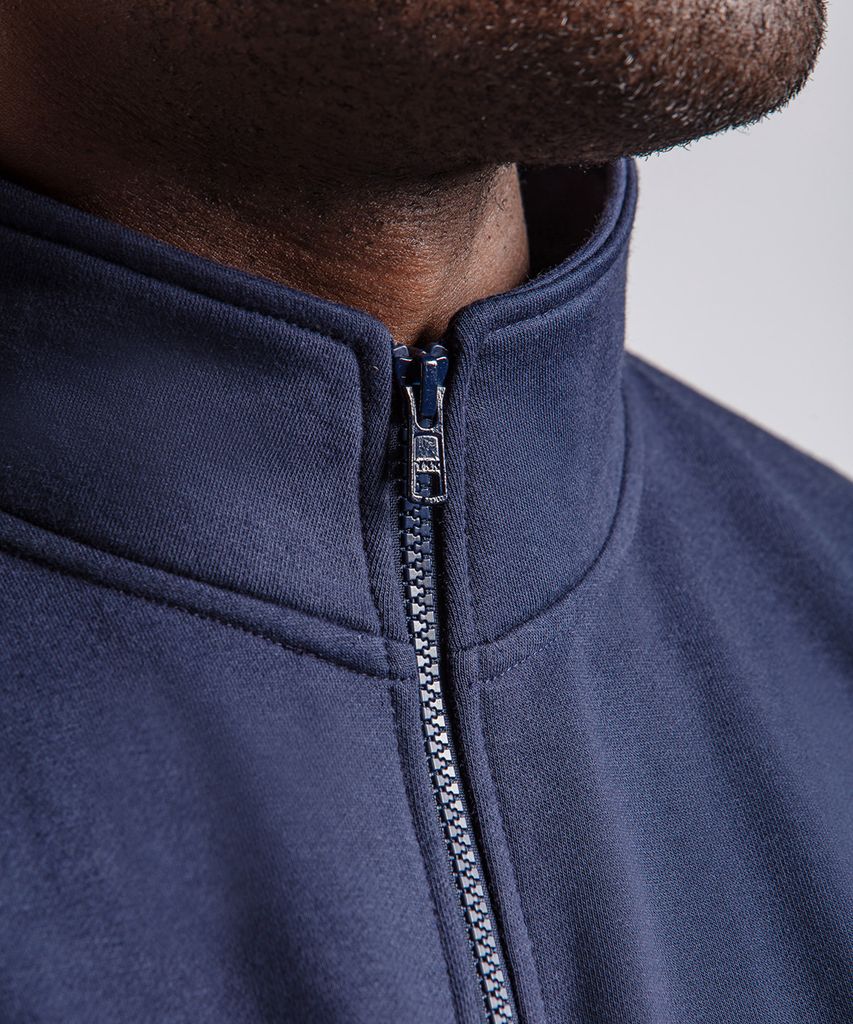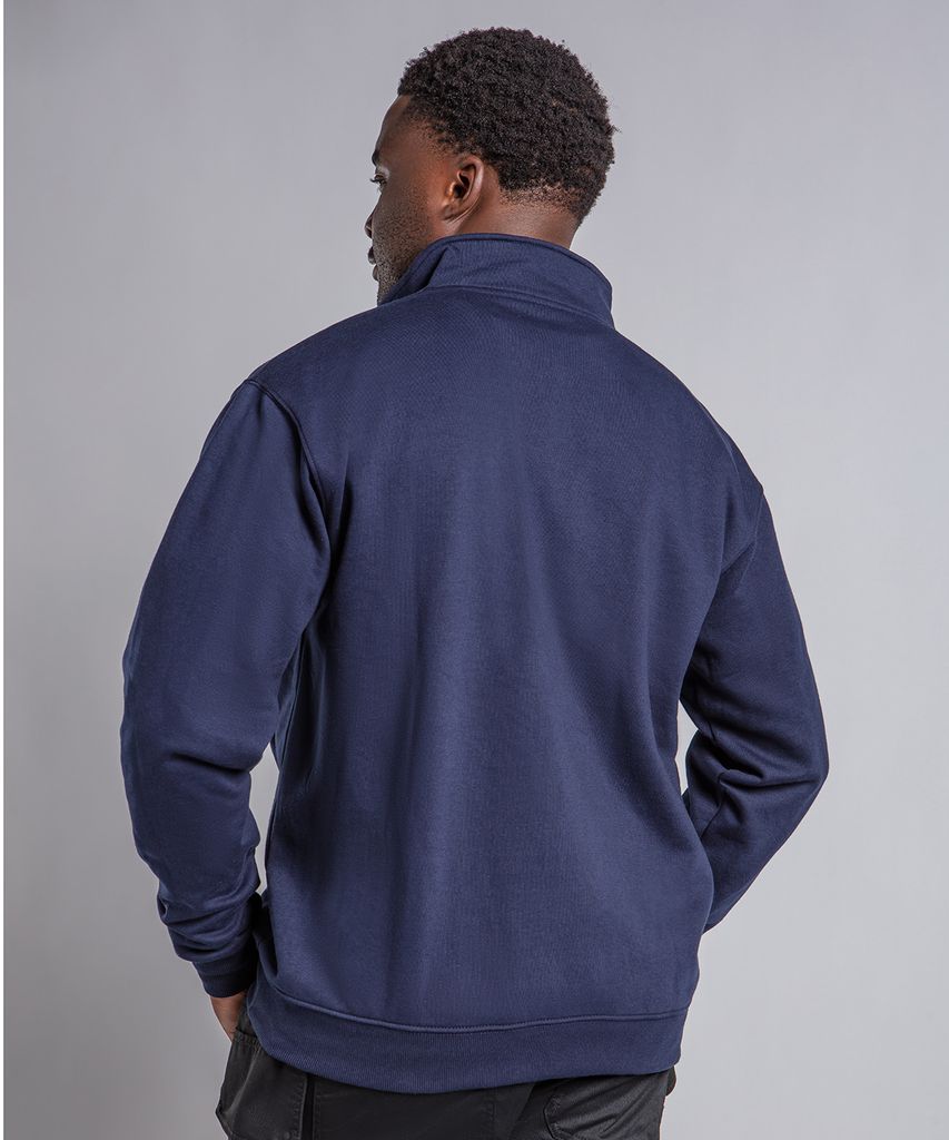 Full dragkedja med två framfickor byggd för stil och hållbarhet. Tillverkat av 300 gram/m² polyester/bomull fleecetyg med dubbla sömmar. Ett robust plagg med hela 300 grams vikt för dig som behöver ett slitstarkt tyg.