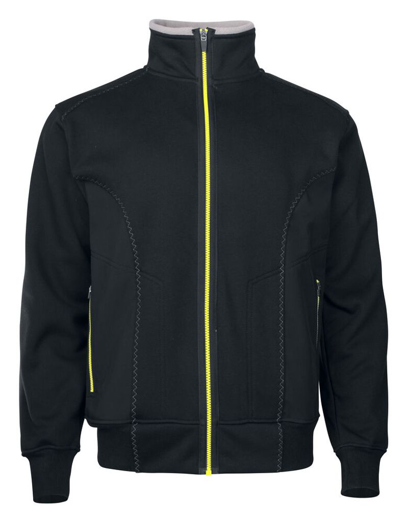 Sweatshirt med dragkedja i snygg stilren gul kontrastfärg. Dragkedja även på sidfickor med softshellförstärkningar. Mudd i ärmslut och midja.