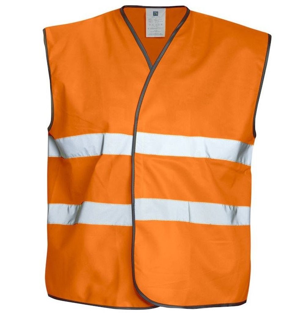 Gul eller orange. Klass 2. 100% polyester. Kardborreknäppning. One size.