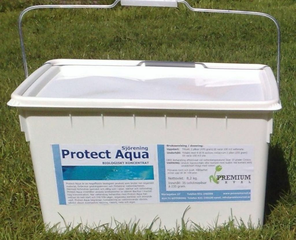 Protect Aqua är en biologisk bakterieprodukt som bryter ner organiskt material och förbrukar gödningsämnen. Därmed förhindras igenväxt och dålig lukt i bassänger, dammar, bäckar och vattendrag. Protect Aqua består av utvalda jordbakterier i hög koncentration. När vattendrag behandlas kan vattnet bli helt klart och fritt från alger och grumlighet. Protect Aqua begränsar nyetablering av vattenlevande växter som näckros, vassrö, nate. Protect Aqua är synnerligen bra på att bryta ner alger.
