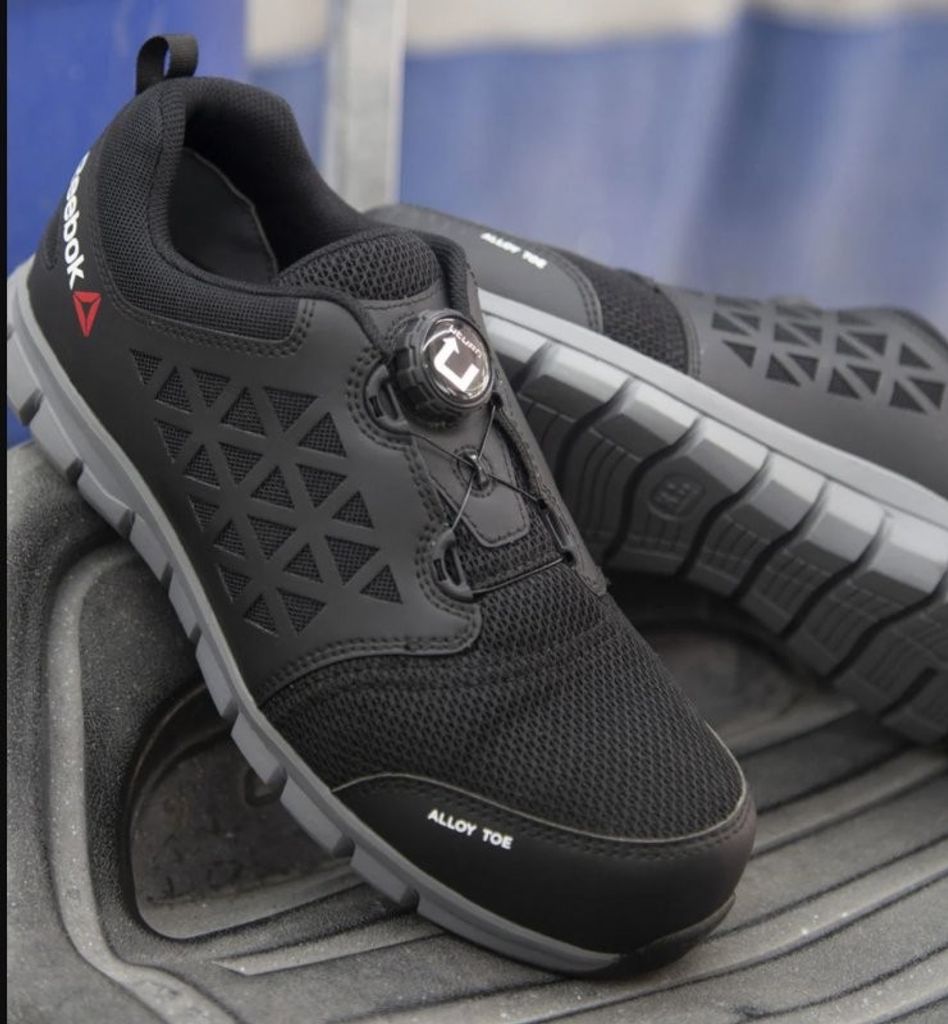 Snygg lätt skyddssko från Reebok med teknik från traditionella sportskor. Ovandel av luftig textil.