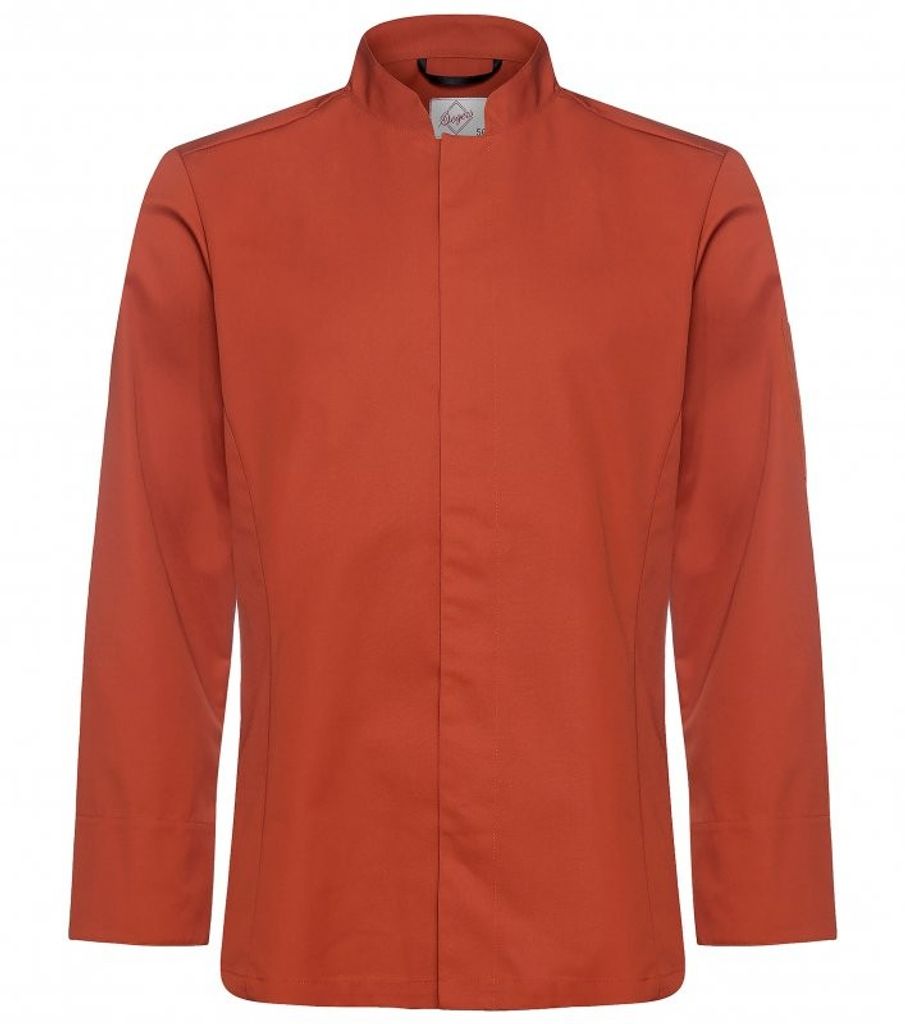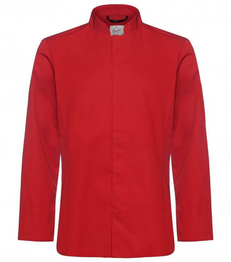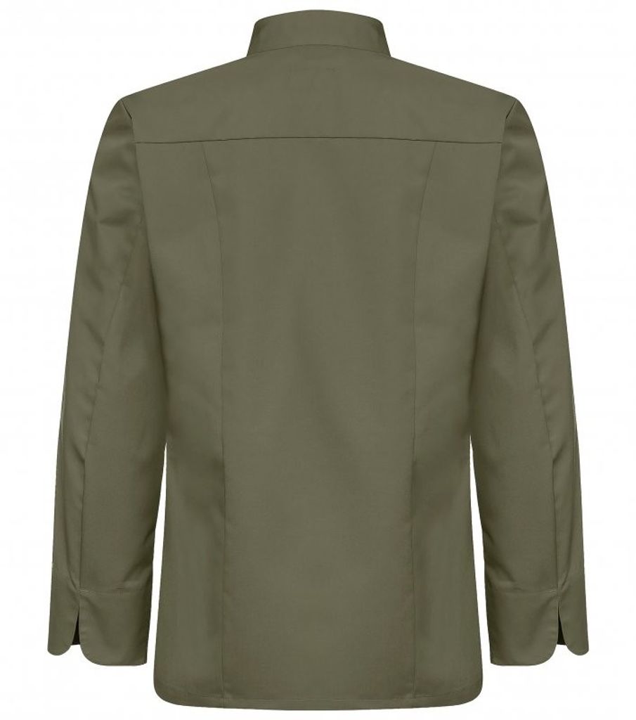 Slimfit passform. Dold knäppning med tryckknappar. Längsgående sömmar fram/bak. Dubbel pennficka vänster ärm. Hank i nacken. Slitstarkt och hållbart, extra kraftigt bomullstyg.