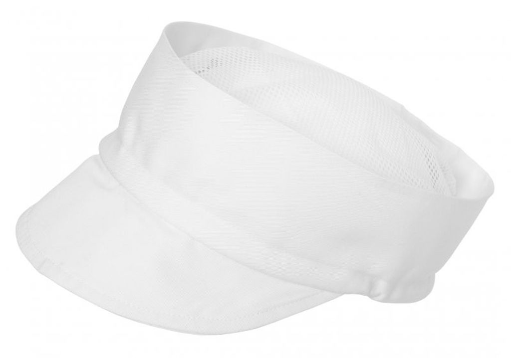 Polypropylen med en metalldetekterbar remsa. 2800 mössor i kartong. Vit eller blå färg.