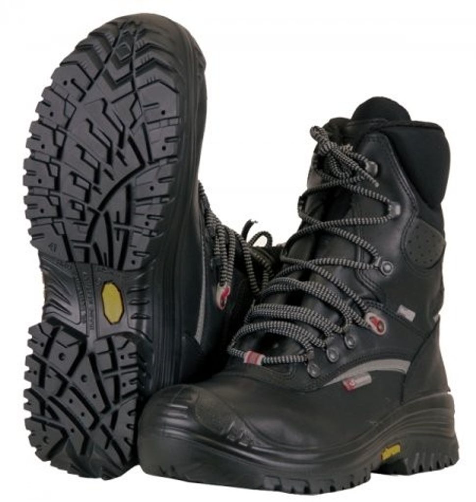 Vinterfodrad skyddskänga av högkvalitativt läder och insida av det högteknologiska materialet Out Dry. Out Dry är ett unikt material som gör skon vattentät och håller en jämn temeratur i skon hela dagen. Out Dry absorberar fukten i skon och håller foten torr. Kängan är utrustad med komposithätta och textilspikskydd, vilket är superlätt och mycket flexibelt. Den har en Vibramsula av gummi som gör skon mycket komfortabel och ger ett utmärkt grepp. Tester har visat att Vibramsulan behåller sina egenskaper också vid låga temeraturer.