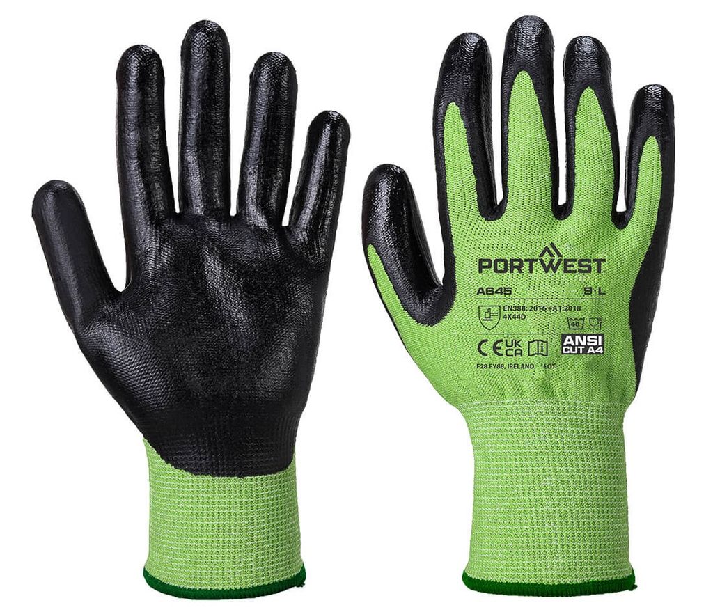 Skärskyddshandske Green nivå D nitril foam livsmedelgodkänd A645