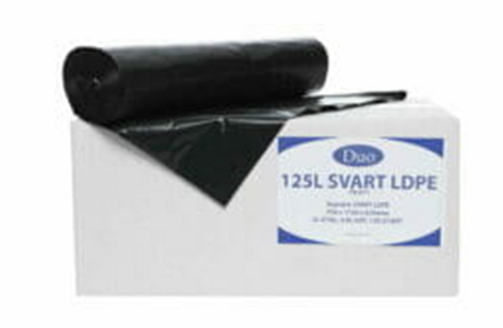 25 säckar/rulle. Stark LD-polyten 40 my. 6 rullar/150 säckar i kartong.