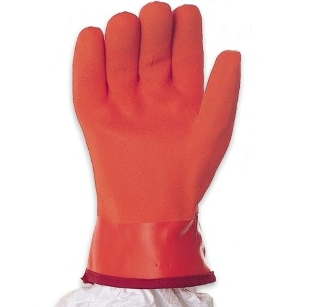 Tåligt och flexibelt, mycket synligt grovt sandyta med PVC-överdrag särskilt framtagen för arbete i köldgrader. Foder av interlockjersey med ett inlägg av stickad mjuk skumfoder för att ge extra skydd mot temperaturer ner till -20° C. Med stickad mudd och krage. Mycket lämplig för yrkesfiskeri eller livsmedelsindustri.