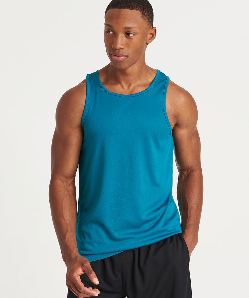 AWDis eget Neoteric™ texturerade tyg med inneboende fukttransport och snabbtorkande egenskaper. Sportig passform. Tygkant runt halsringning och ärmhål. Böjd bakkant. Enkel avrivningsetikett gör den perfekt för rebranding. UPF 30+ UV-skydd.