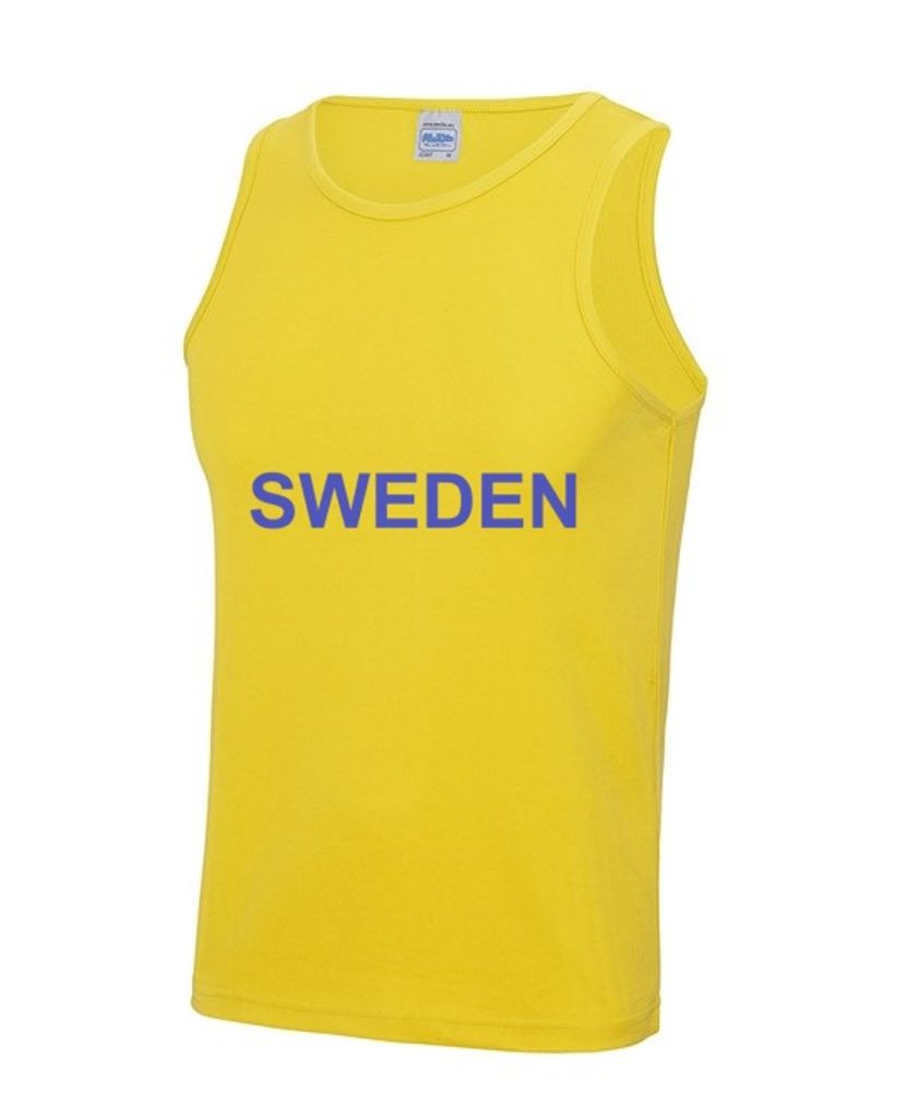 "SWEDEN" 29 cm tryck med stora versaler i mörk royalblå färg. Se bild.....