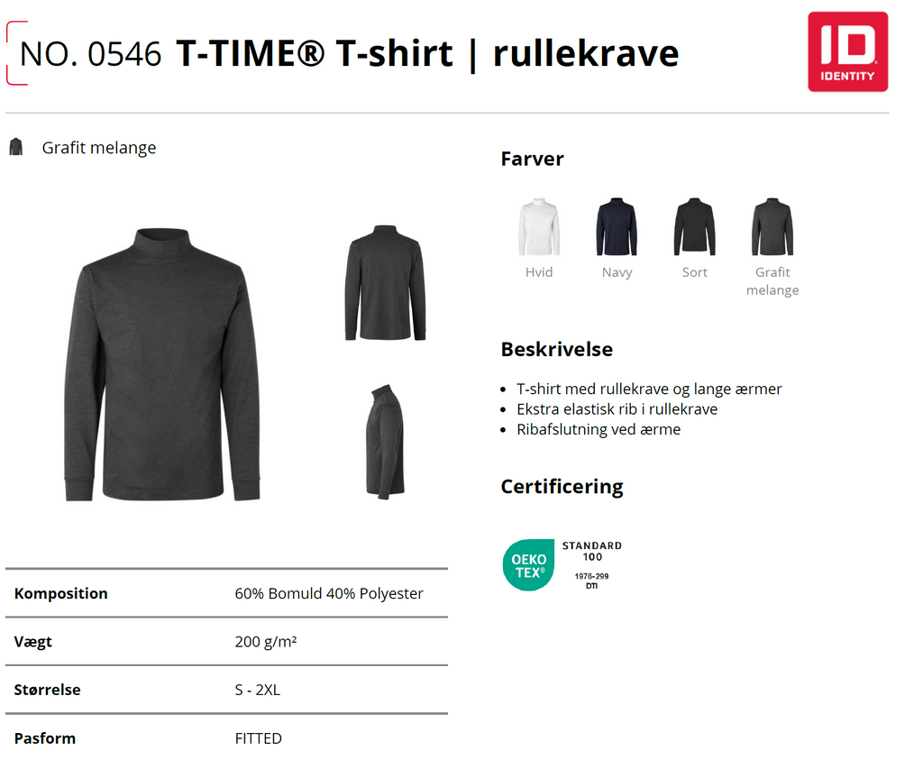 T-shirt med turtleneck och långa ärmar. Extra elastisk ribb i turtleneck. Ribbkant vid ärm.