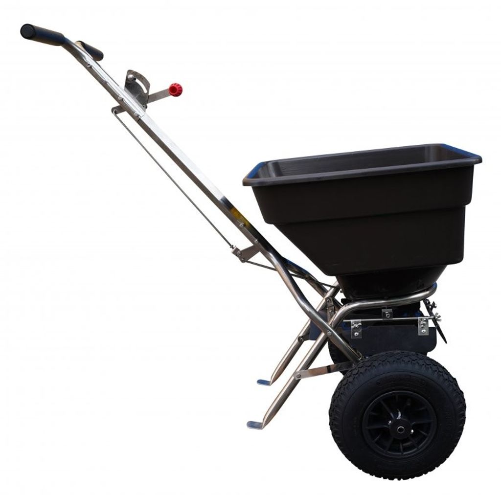Saltspridare och gödselstroller 58 liter. Svart. Gummihjul.