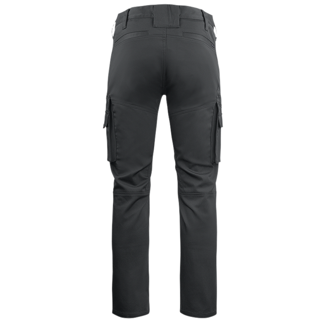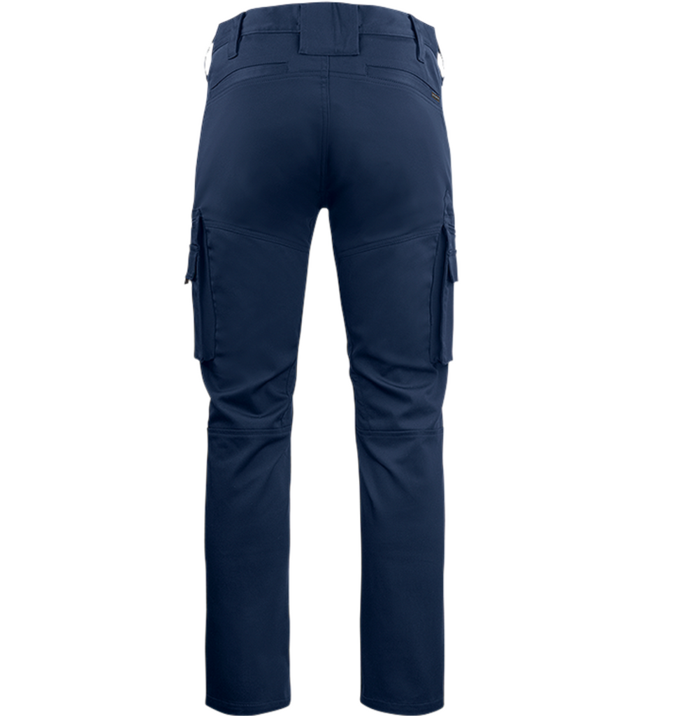 Strech paneller för extra bra comfort och rörelse. 10 fickor för gott om förvaring, 65% återvunnen polyester, 35% bomull 245 gram/m2. Storlek: 28-48 tum.