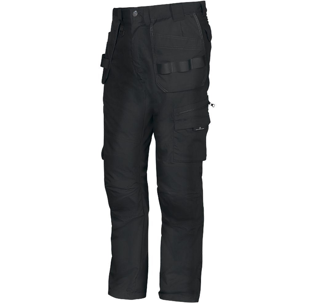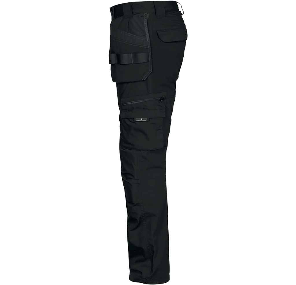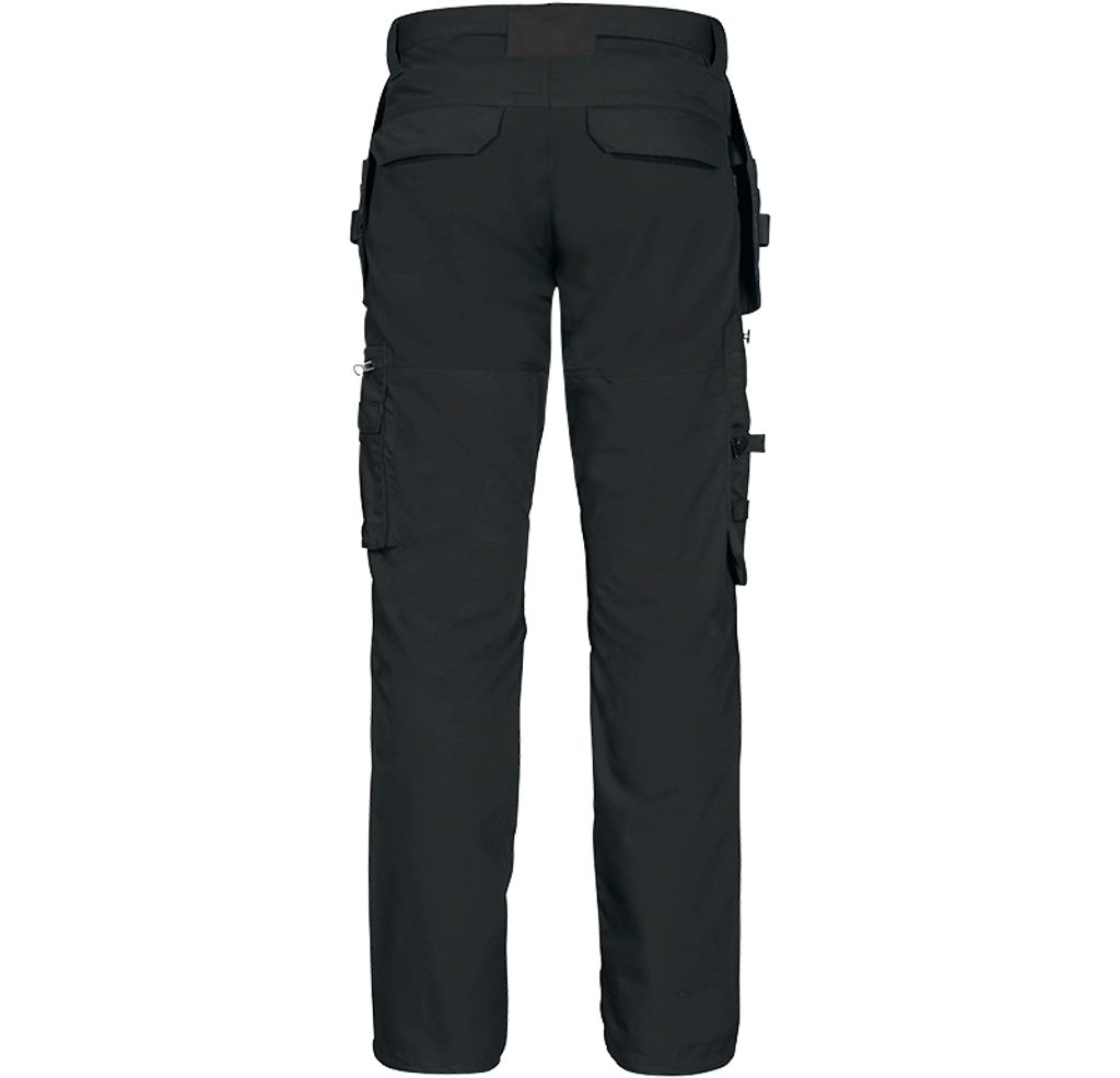 Modern lättare service-/hantverksbyxa för dig som kräver det där lilla extra och önskar mer än funktion, komfort och rörlighet i byxan. Bekväm med inbyggd Comfort stretch bak och på knän. Två spikfickor fram med mejselfickor och verktygshankar som du lätt kan stoppa undan. Byxan har förstärkta, invändiga knäfickor anpassade för knäskydd AK01 och tumstocksficka med knivhållare och pennficka. Du reglerar enkelt vidden i benslutet med den smidiga dragskon.