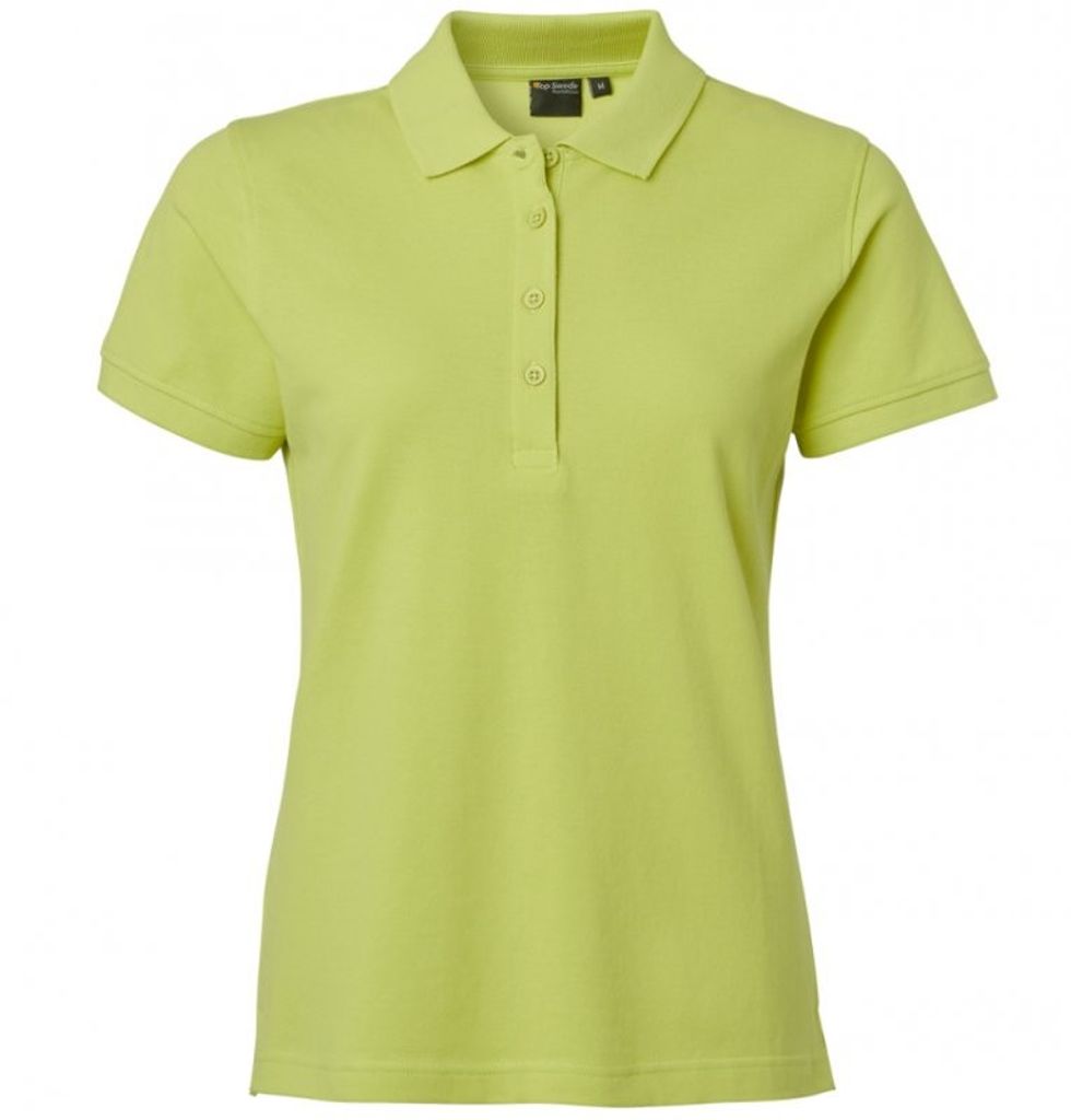 PIKÉ 187 Klassisk bomullspiké dam av hög kvalitet med modern passform. Ribbstickad krage och knappslå med knappar. Kort ärm med mudd i ärmslut.