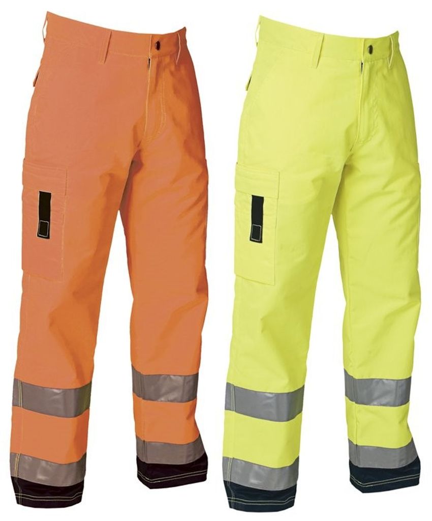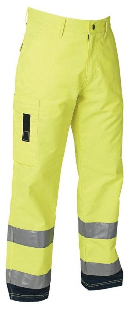 Midjebyxa/transportbyxa klass 1. Benfickor m dold dragkedja. &5% polyester, 35% bomull. Storlek: C46-C62, C146-C156, D96-D120. Marin/Gul