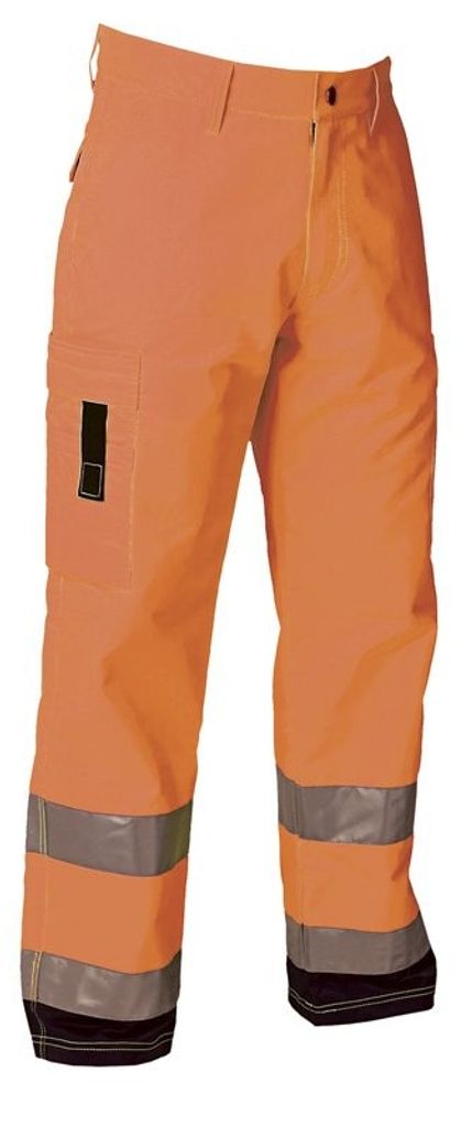 Varselbyxa med två insydda framfickor. Två förstärkta bakfickor med lock och dolda tryckknappar. Två benfickor med dragkedja. Den högra är utrustad med stor extraficka, telefonficka och pennfack. En varselbyxa lämplig transportbyxa, servicebyxa eller liknande.