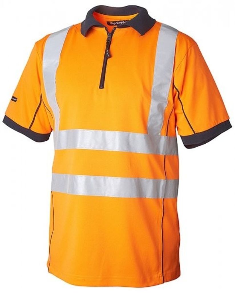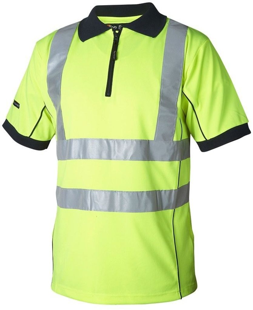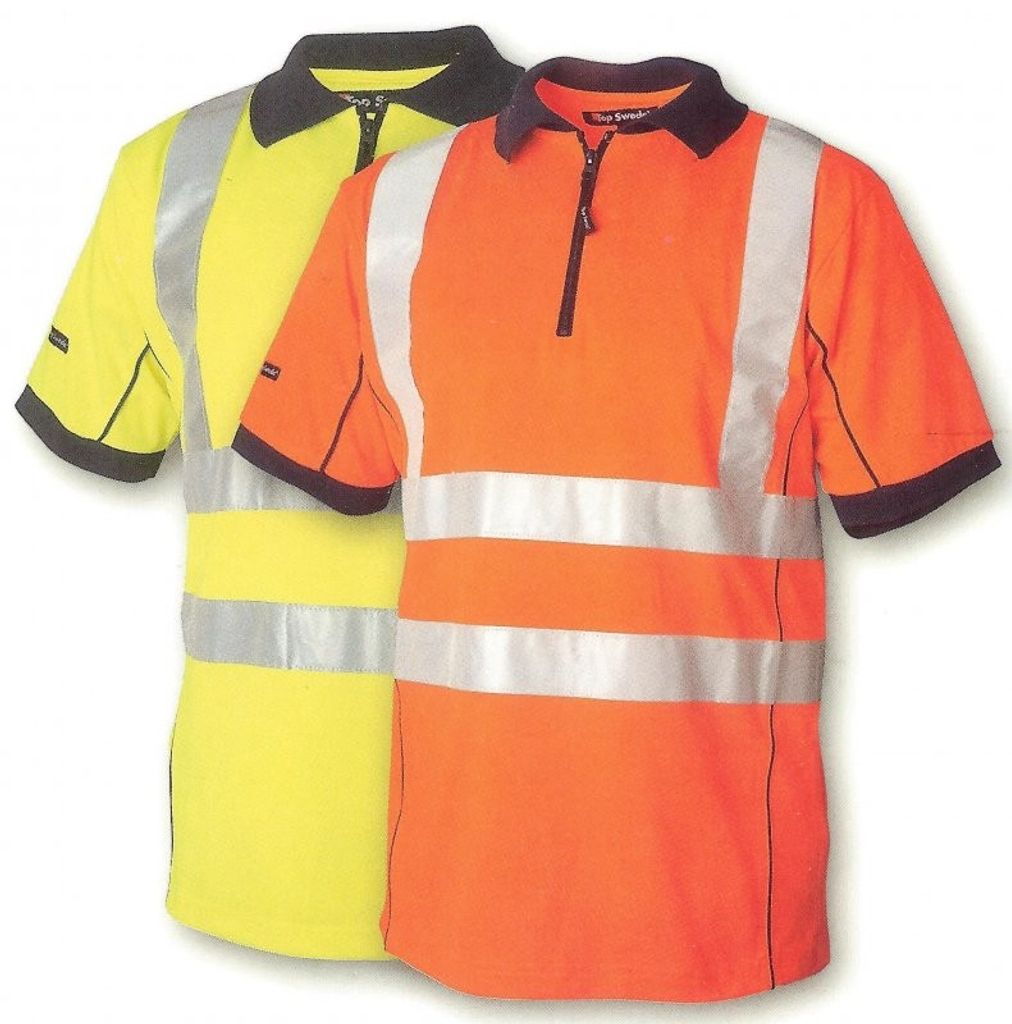 100% polyester. Transporter bort svett. Ribbstickad krage. EN471 klass 3. Storlek: S-3XL.