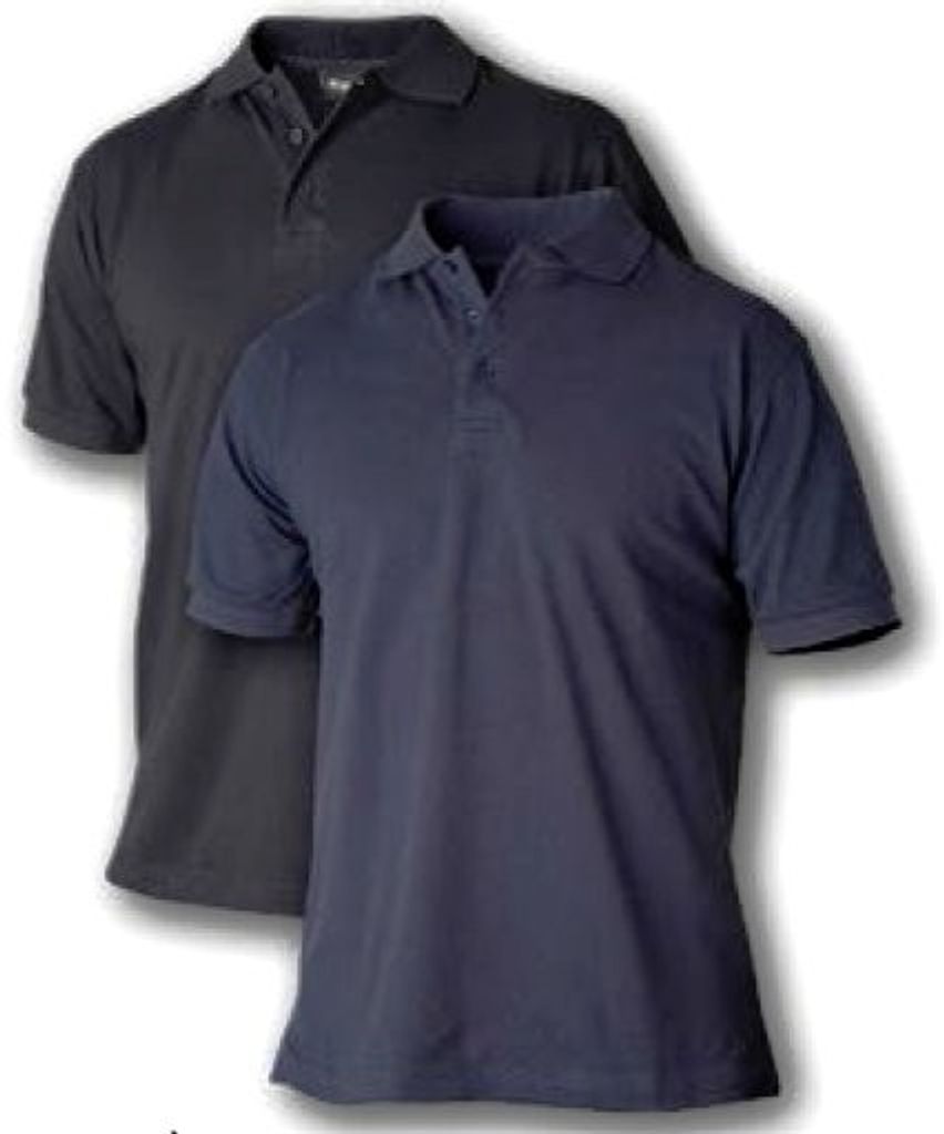 100% bomull, 220 g/m². Ribbstickad krage. Svart eller marin. Vit konstrastpiping. Storlek XS-XXXL.